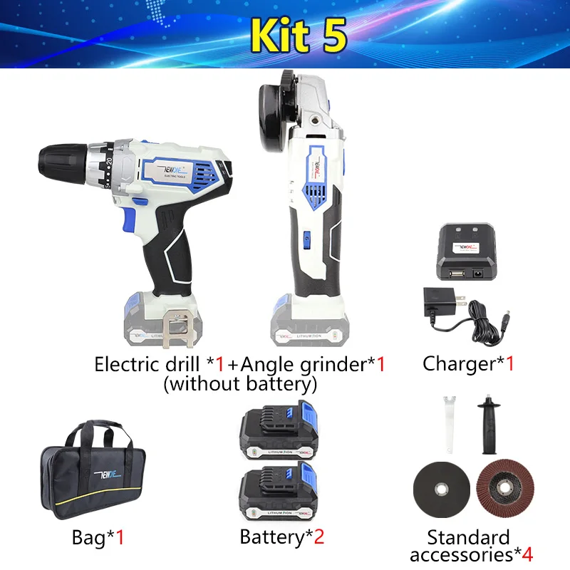 12V Cordless Electric Power Tool Combo Kit Drill/Screw driver angle grinder reciprocating saw LED flashlight inflator/deflator : Click Here 12V NEWONE Angle Grinder ideal for DIY light-duty grinding or cutting with quick change system including one battery : Click Here NEWONE 12V Electric Cordless Li-ion Angle Grinder drill reciprocating saw LED flashlight lamp power tool combo kit with battery : Click Here