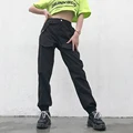 Sweetown Street Style Chic Hippie Pants Women Streetwear Summer 2019 Black Pockets Zipper Open Hip Hop High Waist Trousers