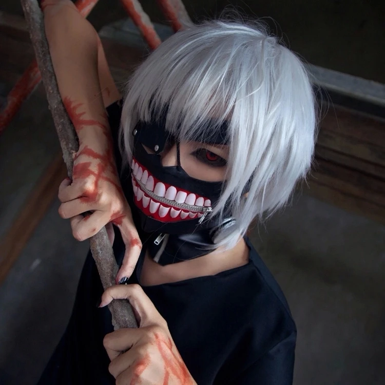 High Quality Anime Tokyo Ghoul Kaneki Ken Wigs Short Straight Silver Heat Resistant Synthetic Hair Cosplay Wig + Mask : Click Here